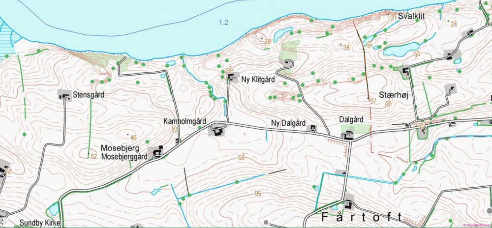Topografisk kort.  © Geodatastyrelsen   (klik for større billede)